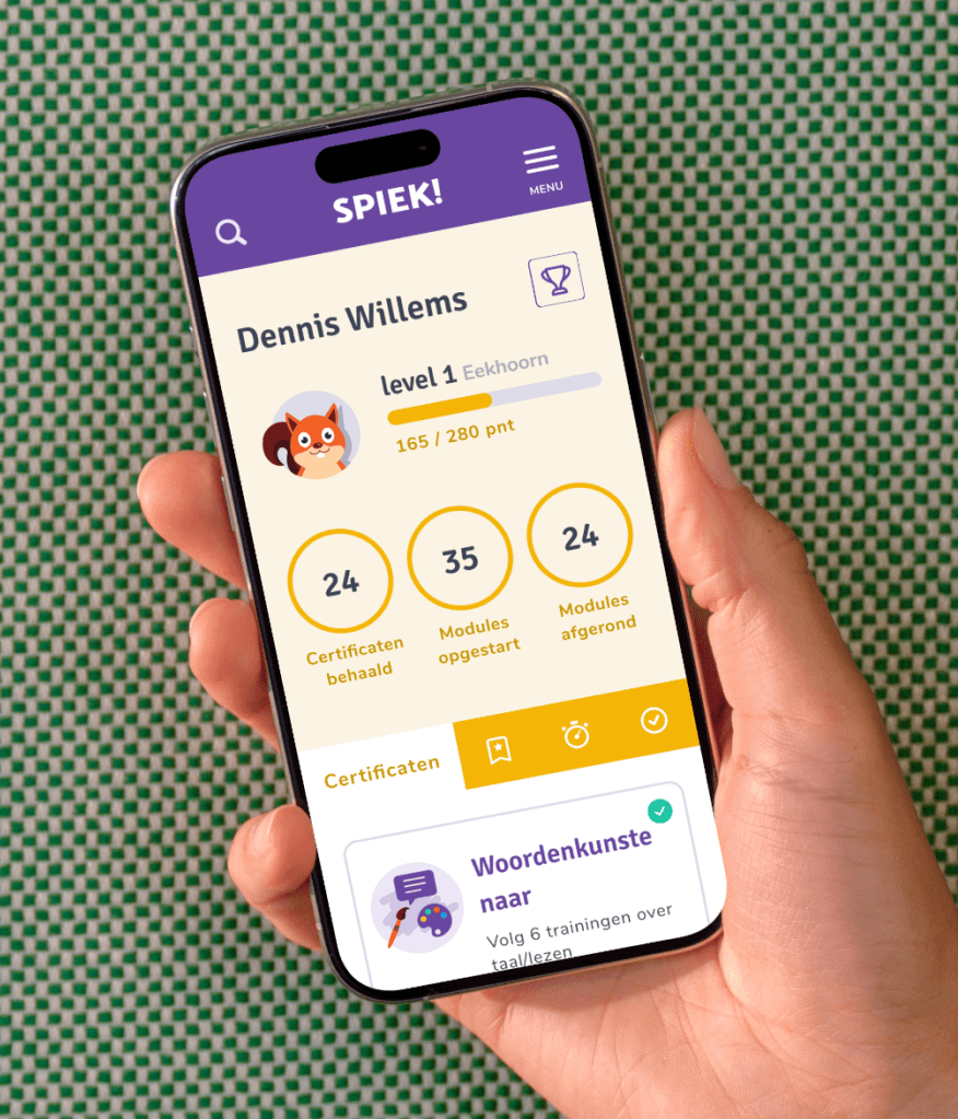 Zwijsen ontwikkelt lesmaterialen voor het basisonderwijs. Op de vraag "Hoe kunnen we leerkrachten digitaal ondersteunen met bij- en nascholing?" bedachten we samen de app Spiek! Deze app biedt microlearning in de broekzak van de leerkracht. Snel de laatste trends op het vlak van basisonderwijs leren of inspiratie opdoen voor nieuwe lessen—het kan allemaal met Spiek!