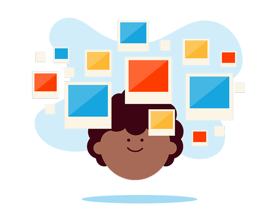 Een groot probleem was hoe we alle lessen gingen voorzien van beeldmateriaal. Dit moest er leuk uitzien, passen binnen het systeem en een professionele uitstraling hebben. Ik heb hiervoor een illustratieplan verzonnen. Elke illustratie die we bij een les plaatsten, bestond altijd uit minimaal 2 en maximaal 4 elementen: 1 achtergrond en 1 tot 3 kleinere illustraties op de voorgrond. Alle losse illustraties konden hergebruikt worden om nieuwe beelden te maken en waren zo gemaakt dat ze van kleur konden veranderen. Met een basisset van ongeveer 250 illustraties konden we oneindig combineren en hadden we beeldmateriaal genoeg voor alle content.